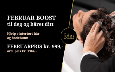 I vasken venter vårt velværeprogram med dobbelt hårbad, balsam og avsluttende hodebunnsmassasje som gjør godt for både hår, hodebunn og sjel. Tilbake i frisørstolen byr vi på forfriskninger som kaffe, te eller lignende sammen med en liten fristelse. Frisøren vil gi deg muligheten til å se, lukte og ta på alle produkter som benyttes i ditt hår. Frisøren vil også underveis avsjekke med deg at du er komfortabel med valgende som ble tatt for dagens klipp og gjøre de justeringer du måtte ønske. Avslutningsvis føner og styler vi deg slik du måtte ønske, og føler du deg litt vågal i dag så gir du din frisør frie tøyler til å style deg med en ”touch of Föhn” - alt inkludert i prisen.